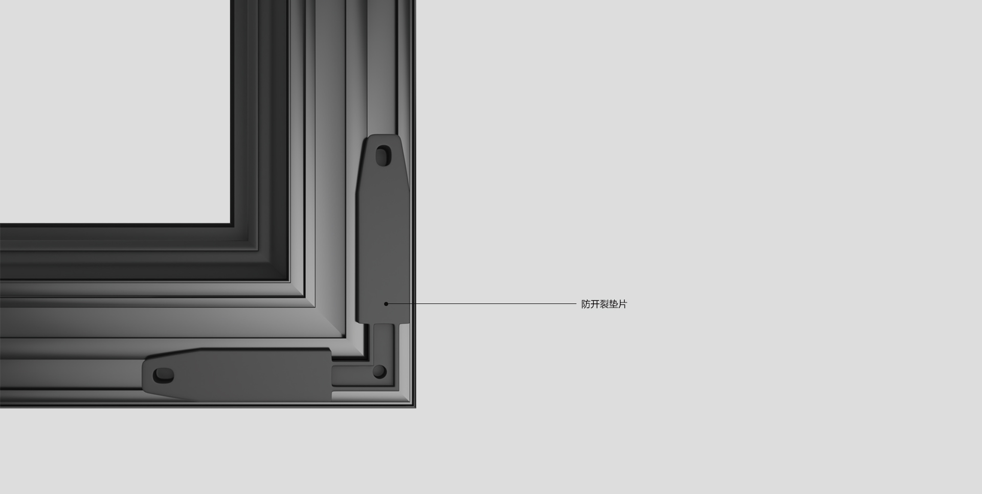 區別于傳統的螺釘連接,使用全鋁式中梃連接角碼,使用銷釘進行連接。能夠確保中梃的連接強度。同時在中梃連接角碼處注雙組份組角膠,增加中梃連接窗強度和密封性能。同時,在中梃連接處增加使用防水封片,進一步提升中梃處的防水。